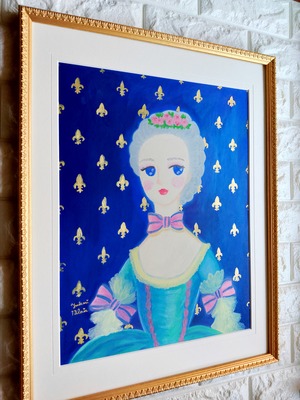 Jean-Étienne Liotard(ジャン エティエンヌ リオタール)の7歳の頃のマリーアントワネットの肖像画を元絵のかわいらしくも気品溢れる雰囲気を大切に、また実際にマリーアントワネットが大好きでパリやベルサイユ、そしてオーストリアの宮殿などでマリーアントワネットの足跡をたどり心動かされた思いを込めてYukari Blairの感性でオマージュしました。
