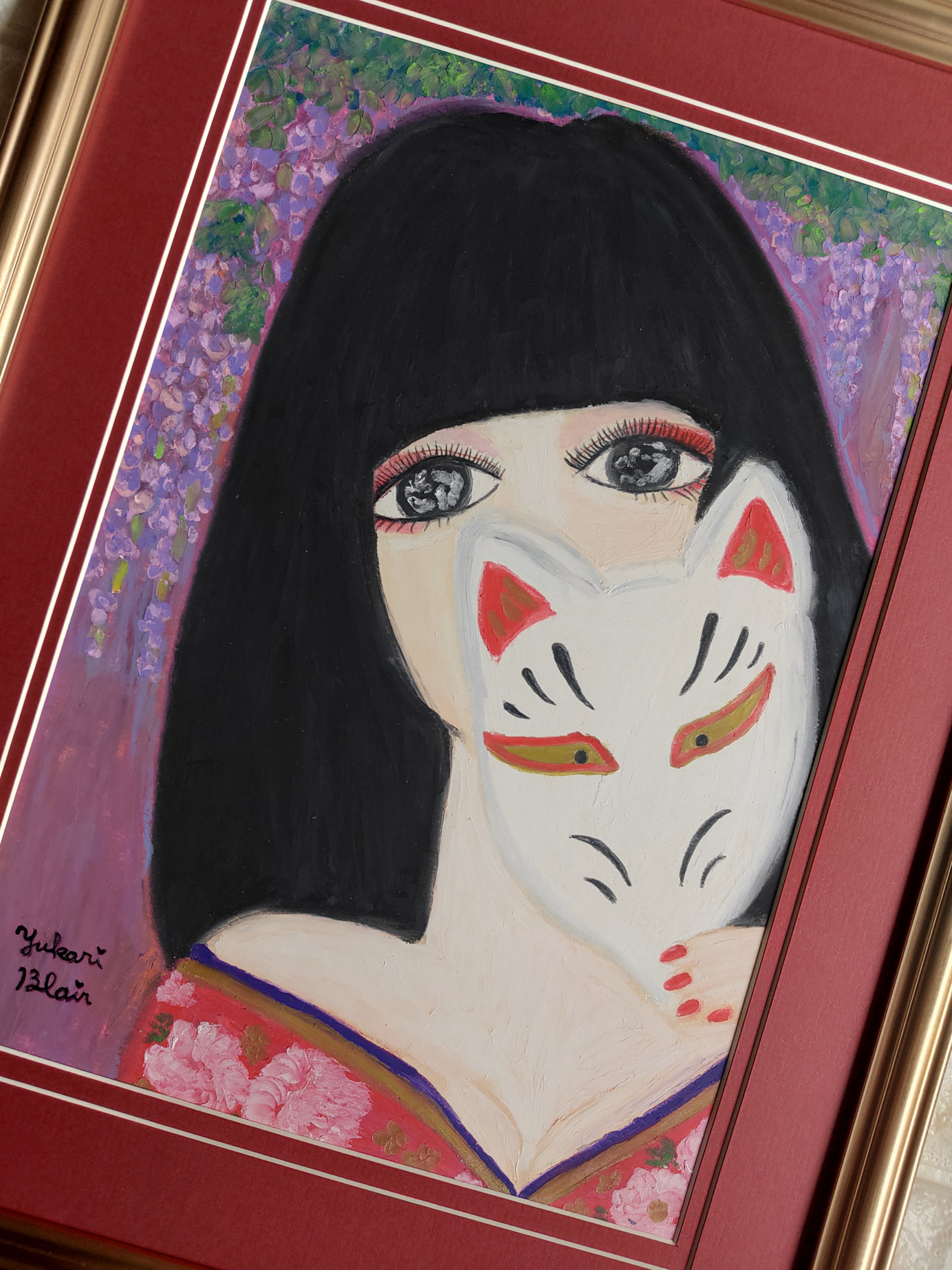 京都で花魁撮影の体験をしたことをきっかけに、花魁の妖艶な世界感に魅了されました。そして花魁女性の人生の物語のイメージが同時に頭の中で駆け巡りこの年3枚の花魁作品を描きました。その中の1枚となります。物語の続きをあなたの感性で感じてください。