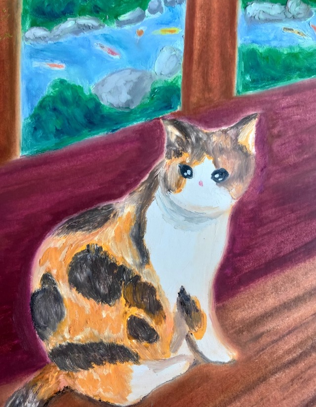 この作品はそんな長い年月を重ねた日本家屋が持つ温かみと、そこに息づく命の尊さに心動かされた思いを元に感じたままの自由な感性で描きました。