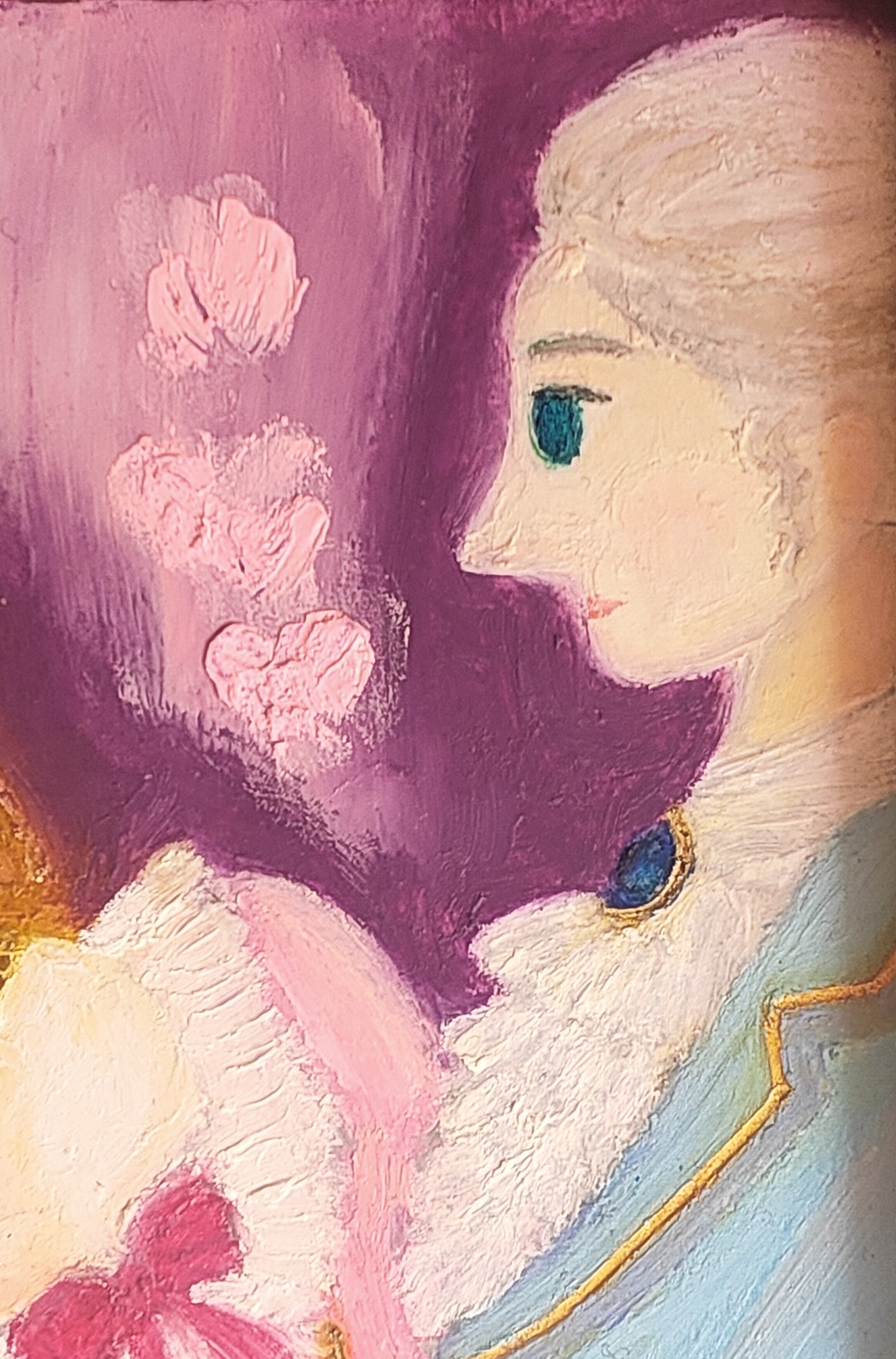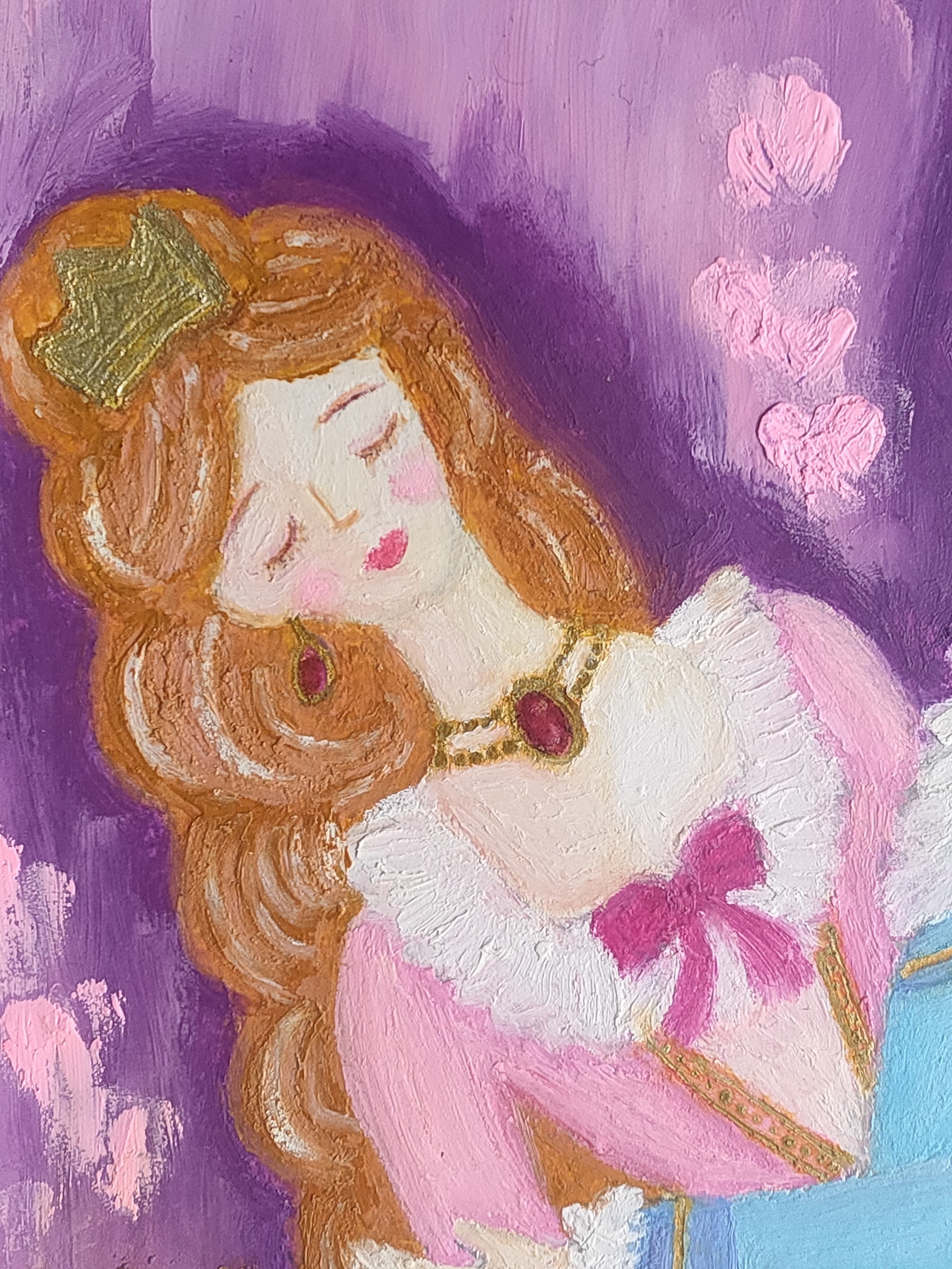 子供の頃からお姫様を描くのが好きでした。あの頃のピュアな気持ちを思い出し子供心を大切にしながら描きました。この作品がいつか知らない間に忘れてしまったあなたの子供心を思い出すきっかけとなる1枚になれたら嬉しいです。